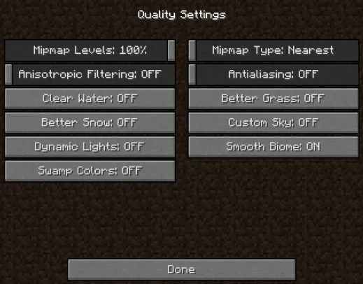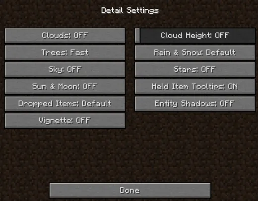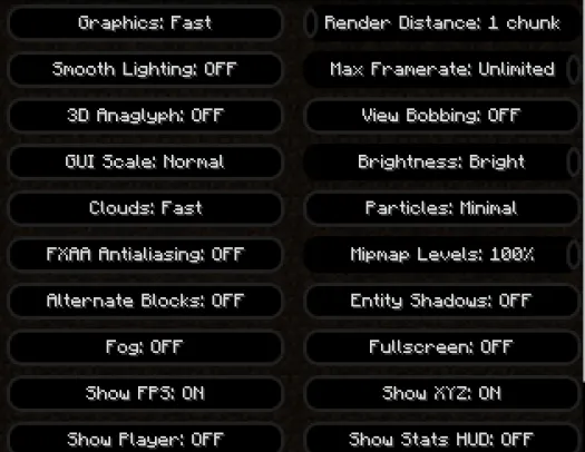 7. Enable the "Best FPS Settings for Eaglercraft" settings showed above.